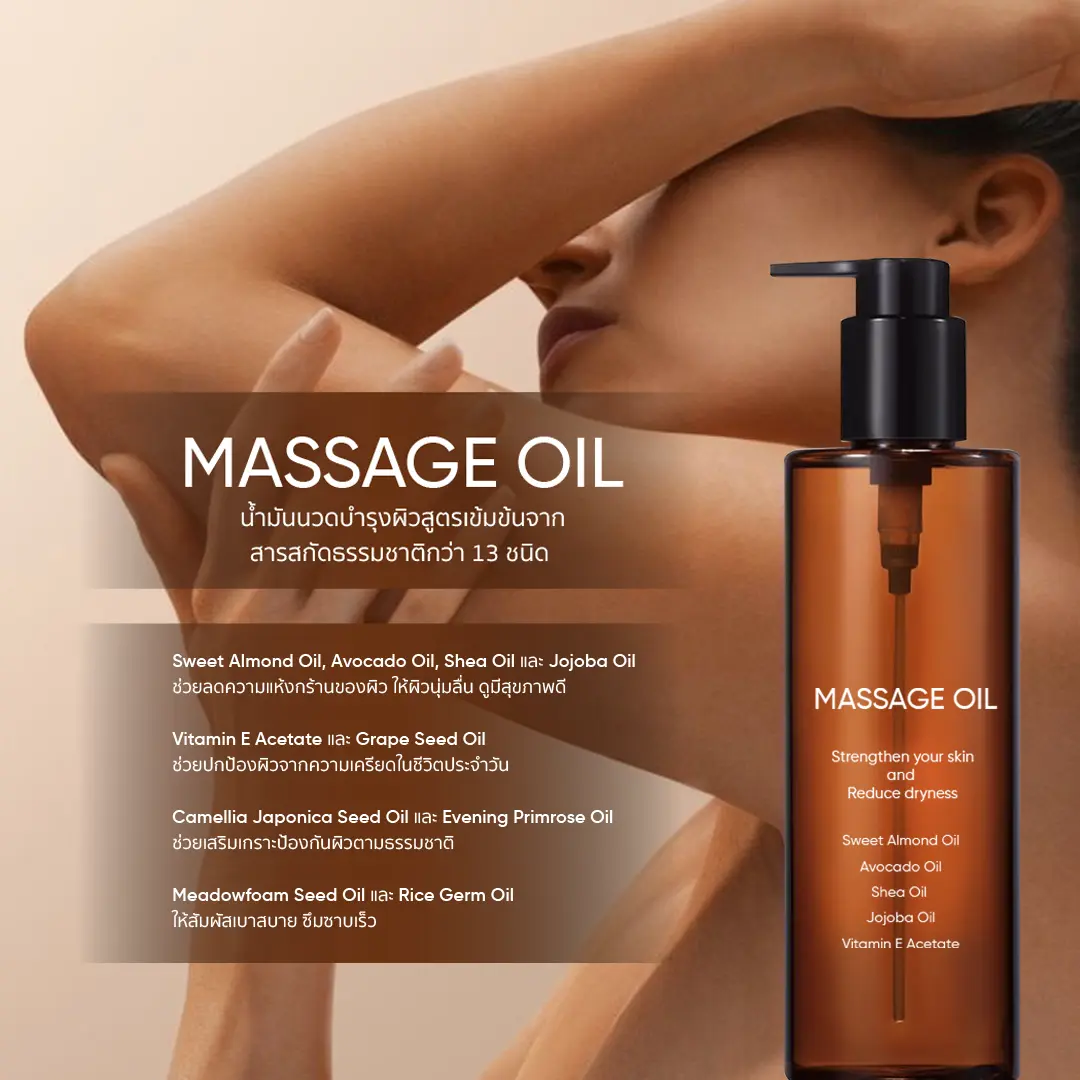 น้ำมันนวดบำรุงผิวสูตรเข้มข้นจากธรรมชาติ 13 ชนิด ชุ่มชื้นสูง เนียนนุ่ม ไม่เหนอะหนะ พร้อมกลิ่นหอมผ่อนคลาย